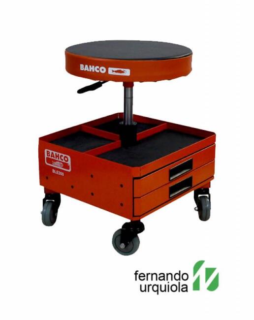 Taburete de taller acolchado de regulación neumática Altura ajustable gracias al sistema neumático, de 435 a 555 mm Fácil ajuste de la altura mediante palanca neumática Capacidad de carga: 136 kg Tres cajoneras de fácil alcance para almacenamiento de herramientas, partes, accesorios y cualquier tipo de objeto Taburete de taller giratorio y acolchado, cómodo, con compartimentos de fácil alcance y cajones debajo Equipado con una bandeja muy útil para herramientas o partes Almohadilla giratoria de gomaespuma PU de alta densidad, muy cómoda, para mayor resistencia 4 ruedas orientables 360° de PVC, de 75 mm de diámetro y 25 mm de ancho