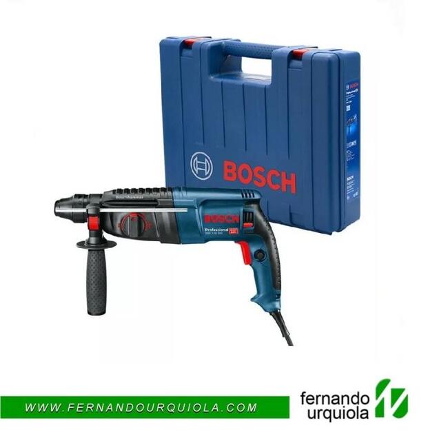 Martillo Rotopercutor SDS Plus GBH 2-26 DRE Datos técnicos: Potencia absorbida: 800 W / Potencia de percusión: 0 – 3 J / Nº de percusiones a velocidad nominal de rotación: 0 – 4000 1/min / Peso: 2,7 kg / Ø de perforación máx. en hormigón: 26 mm / Ø de perforación máx. en acero (con portabrocas): 13 mm / Ø de perforación máx. en madera (con portabrocas): 30 mm / Coronas perforadoras huecas en muros de ladrillo: 68 mm / Velocidad variable y giro reversible; con embrague / Incluye: Empuñadura adicional - Tope de profundidad -Incluye Maletín de transporte / Origen Alemania.