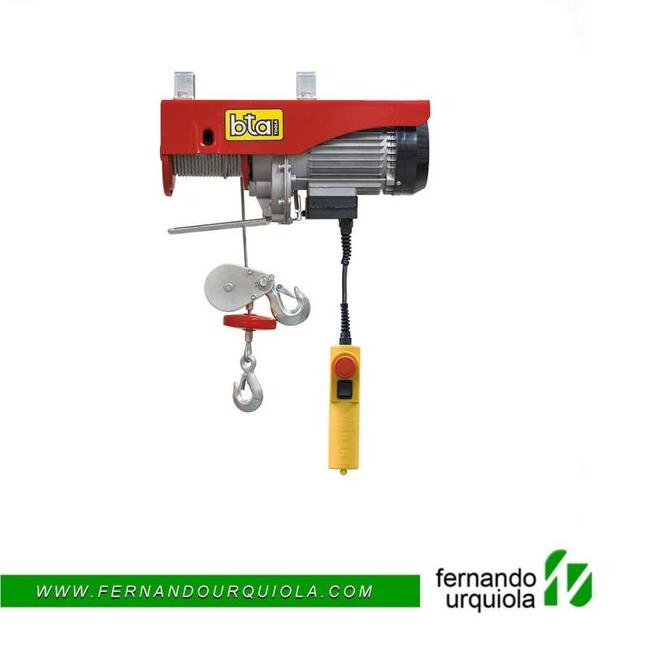 APAREJO ELECT. 250/500 Kg – 12 m. Tensión: 220 V/50 Hz Potencia: 900 W Alzada: 6-12 m Velocidad elevación: 10 m/min 250 kg 5 m/min 500 kg Ø Cable de Acero: 4,2 mm Carga máxima: 500 Kg Uso: Profesional. APAREJO ELECT. 250/500 Kg – 12 m.
