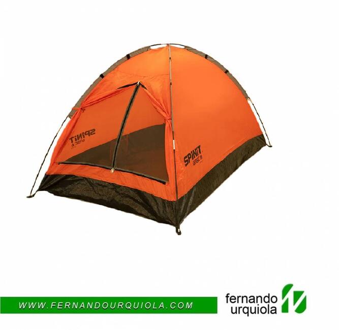 Carpa SPINIT 2 personas Basic II Camping Fabricada en Poliester P.U 170T respirable e impermeable Piso de Polietileno 10 x 10 gms /cms2 Varillas de fibre de vidrio Puerta con mosquitero Peso de 1,6 Kg Incluye bolso de transporte Ideal para Camping o Playa Alta relación precio-calidad Fácil armado Medidas 2,00 x 1,20 x 1,00 m